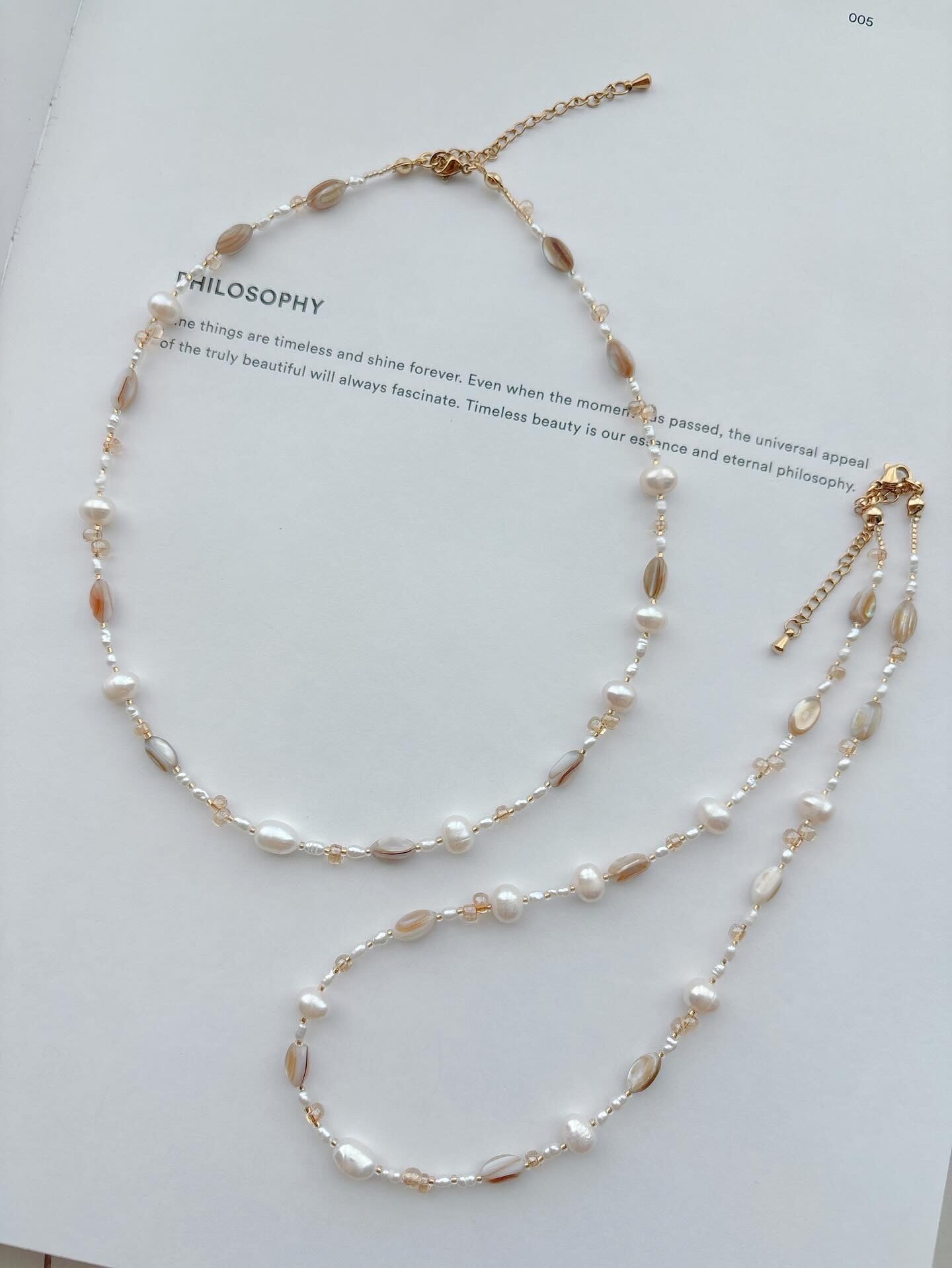 どちらもシェル、パール、ガラスビーズの種類