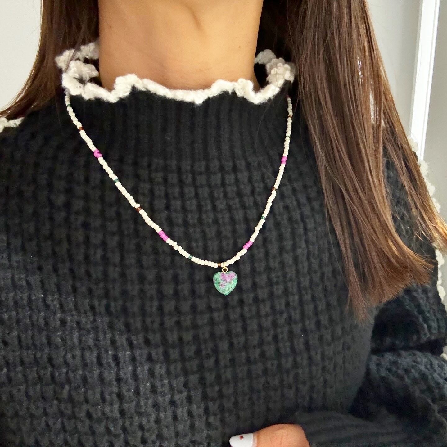 ゾイサイトハートネックレス¥2000